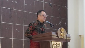Tastaftiyan Risfandy, S.E., M.Sc., Ph.D., Wakil Dekan bidang Kemahasiswaan dan Alumni FEB UNS, dalam sambutannya menyampaikan pentingnya kegiatan semacam ini dalam mendukung proses aktualisasi diri mahasiswa.