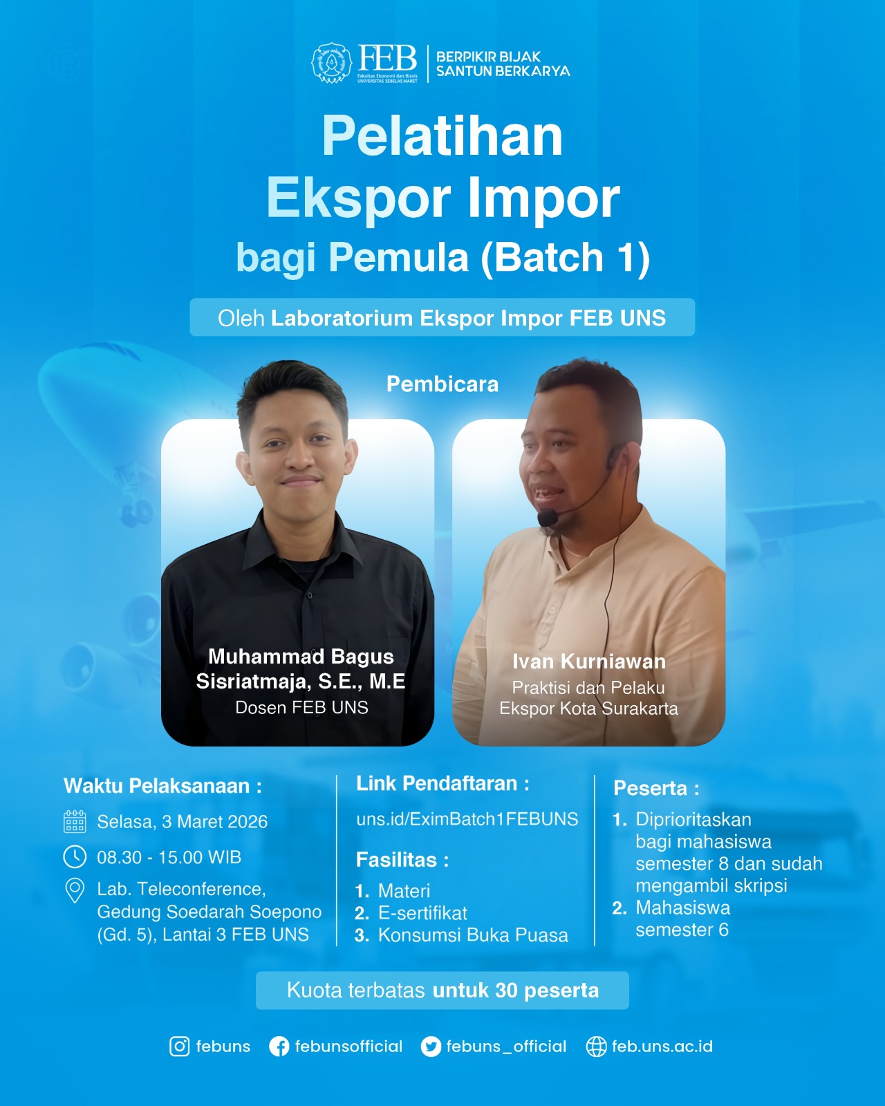 Artikel Pelatihan Ekspor Impor bagi Pemula (Batch 1) pertama kali tampil pada Fakultas Ekonomi dan Bisnis Universitas Sebelas Maret.
