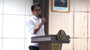 The session, which presents two FEB UNS alumni as speakers, is opened by Tastaftiyan Risfandy, S.E., M.Sc., Ph.D., Vice Dean for Student and Alumni Affairs FEB UNS. In his opening remarks, he emphasized that the program provides an important platform for students to understand any relevant competencies required in the current and future industry needs. “Students must be able to recognize the direction of industrial change, understand the competencies that you will need, prepare for it, and build the confidence needed to pursue their career paths,” he stated.