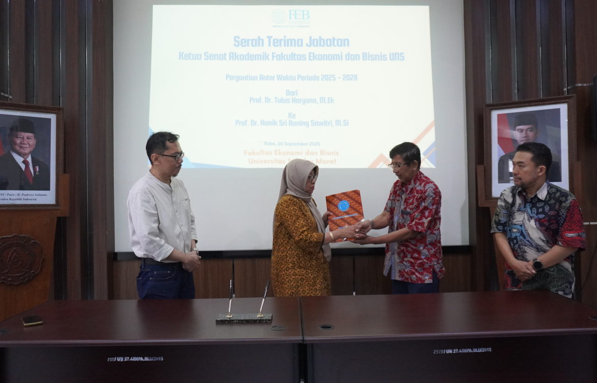 16 Sep 2026 Aulia MF faculty Academic Senate FEB UNS Chairmanship Handover Ceremony: Leadership Transition from Prof. Tulus to Prof. Hunik The Academic Senate of the Faculty (SAF), Faculty of Economics and Business (FEB), Universitas Sebelas Maret (UNS), conducted the handover Read More