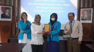 Sementara itu, Kepala Sekolah SMA Muhammadiyah PK Kottabarat, Hendro Susilo, S.Pd., menyampaikan bahwa program Sit In University bertujuan memberikan pengalaman langsung kepada siswa dalam mengenal karakteristik pembelajaran di perguruan tinggi.